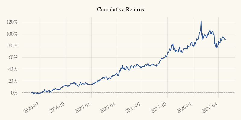 The final upgrade comes from implementation. By accessing BTC/XAU-denominated yield-bearing vaults onchain, the strategy keeps the diversification profile while adding an onchain-native return component (Sharpe ratio: 1.74):